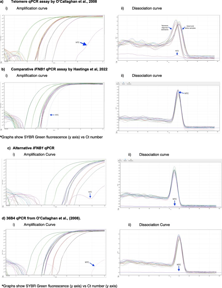 Comparative Telomere and IFNB1 qPCR no plasmid Telomere qPCR with plasmid Comparative IFNB1 qPCR with plasmid Alternative IFNB1 qPCR with plasmid 36B4 (RPLP0) qPCR with plasmid