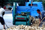 ■牽引拖車式帶輔助喂料的免剝皮玉米脫粒機