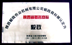 為積極推進(jìn)我省商標(biāo)戰(zhàn)略的實(shí)施,增強(qiáng)企業(yè)品牌意識(shí),增強(qiáng)陜西產(chǎn)品的市場競爭力,根據(jù)《陜西省著名商標(biāo)認(rèn)定與管理暫行規(guī)定》的規(guī)定,經(jīng)研究,陜西省工商行政管理局認(rèn)定陜西毅政農(nóng)業(yè)機(jī)械有限公司的注冊商標(biāo)毅政為陜西省著名商標(biāo)。